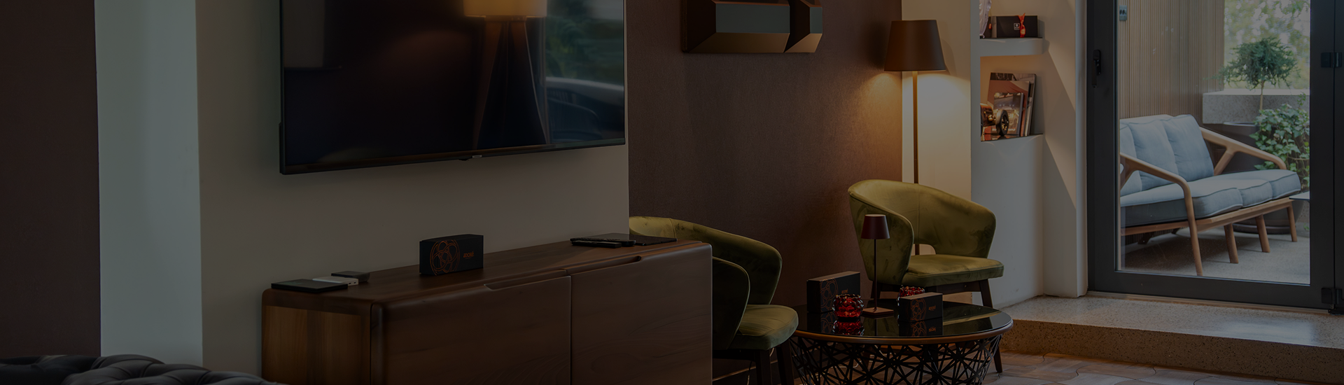 Tokom toplijih dana, salon se otvara prema intimnoj terasi koja gleda na našu baštu, savršenom mestu za neformalne razgovore, čašu vina ili predah u zelenilu koje okružuje prostor.